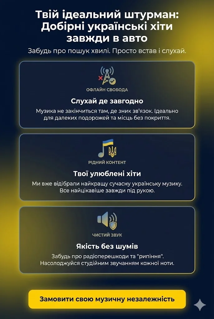 Ідеально підходить для дороги, дому, свят або тих моментів, коли хочеться справжнього українського звучання.